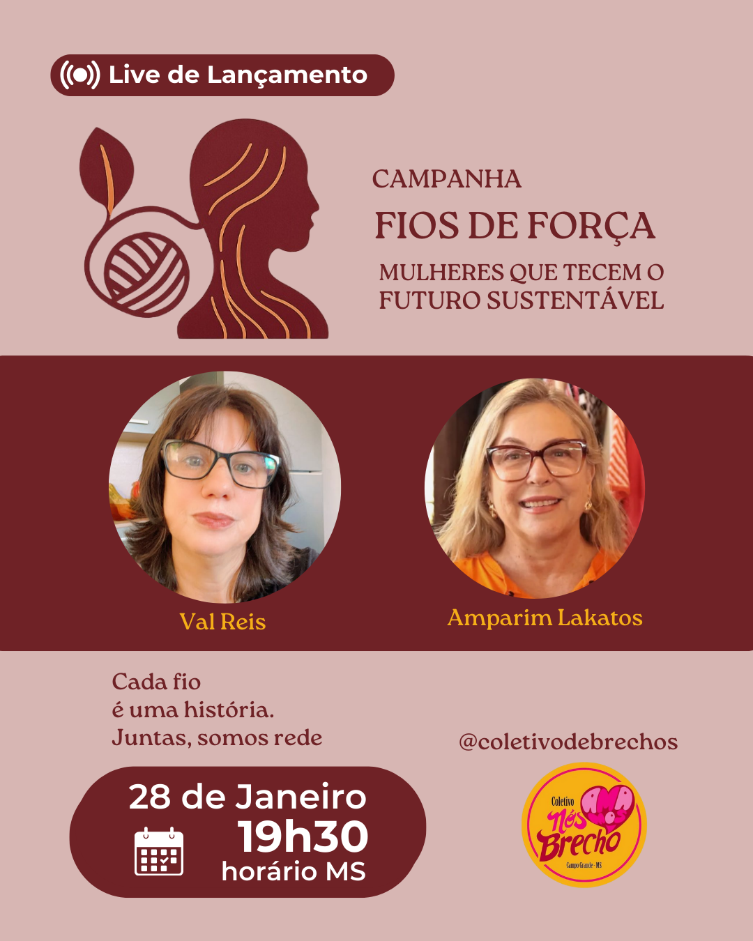 O Coletivo Nós Amamos Brechó, que atua desde 2015 no Mato Grosso do Sul, lança nesta quarta-feira, 28 de janeiro, às 19h30 (horário de MS), a campanha Fios de Força — um movimento nacional que convida mulheres da moda sustentável e informal a se reconhecerem como protagonistas de uma nova economia.